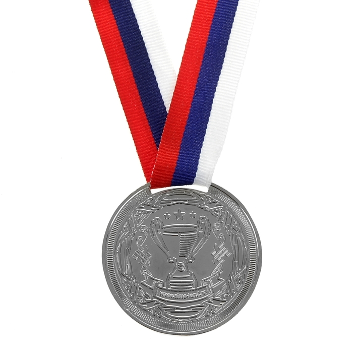 Медаль призовая 014, d= 7 см. 2 место, триколор. Цвет серебро. С лентой