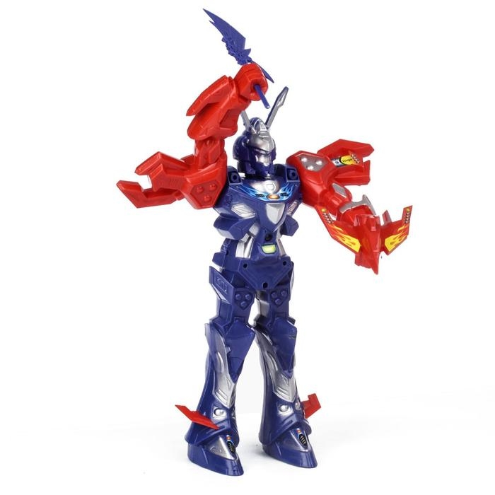 Игрушка оснащённа оружием, станет любимой игрушкой малыша. С роботом можно играть дома и брать с собой на прогулку.