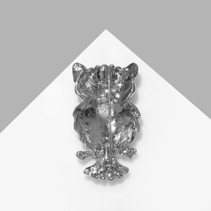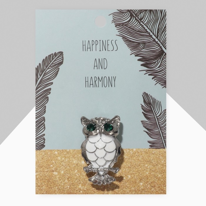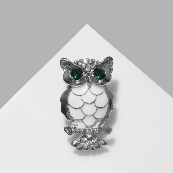 Брошь «Сова», цвет зелёно-белый в серебре