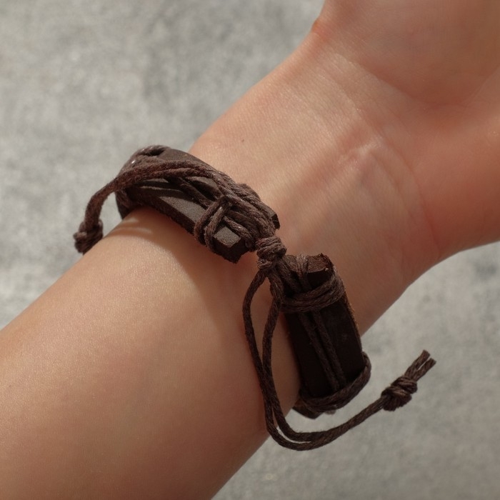 Браслет кожа «Пластина», цвет серебряно-чёрный, 23 см
