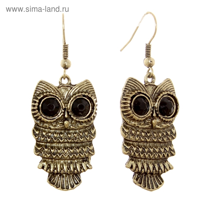 Серьги металл Art совушка, цвет чёрный в чернёном золоте