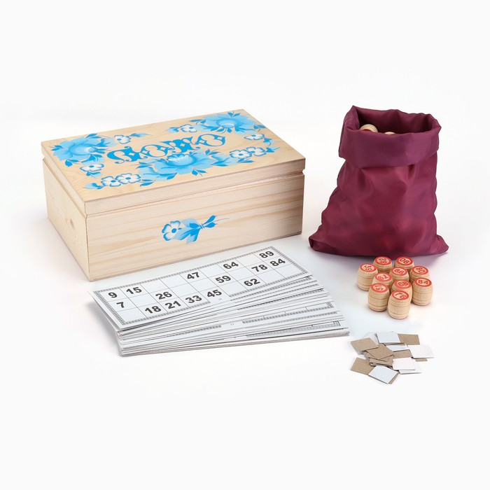 Русское лото деревянное, игра настольная "Роспись", в подарочной шкатулке, с бочонками