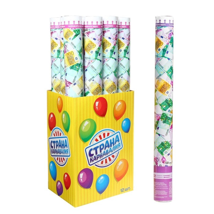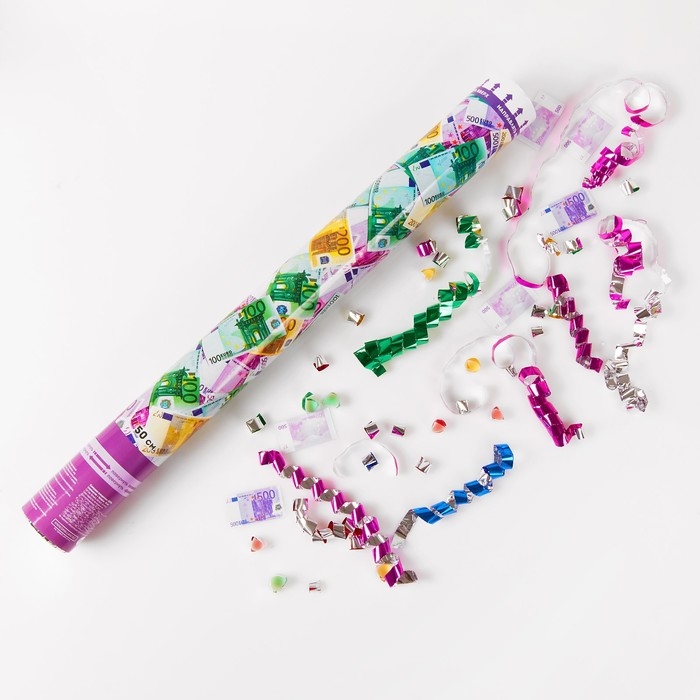 Пневмохлопушка «ЕВРО», серпантин, бумага, евро, 50 см