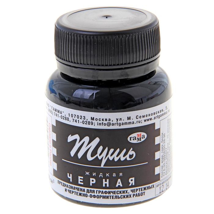 Тушь жидкая чёрная, 70 мл "Гамма"