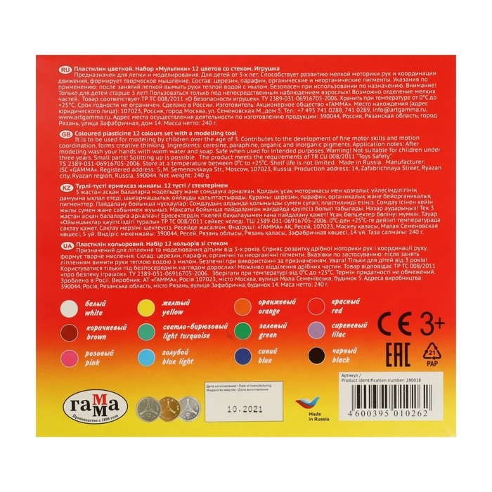 Пластилин серии "Мультики" разработан специально для детей от 6 до 9 лет с учетом рекомендаций педагогов.