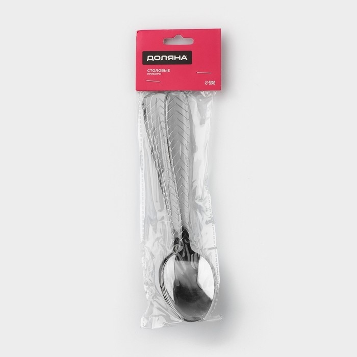 Набор столовых ложек из нержавеющей стали Доляна «Колосок», длина 20,5 см, толщина 2 мм, 6 шт, цвет серебряный