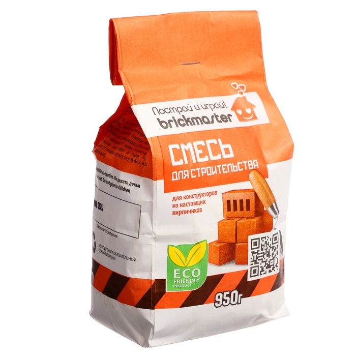 Это специальная смесь, для конструкторов Brickmaster. Она состоит из речного песка и кукурузного крахмала. Она не только обладает всеми свойствами настоящего цемента, но также позволяет при необходимости несколько раз перестраивать конструктор: достаточно готовую постройку поместить на 2-3 часа в воду, и все кирпичики снова отделятся друг от друга.