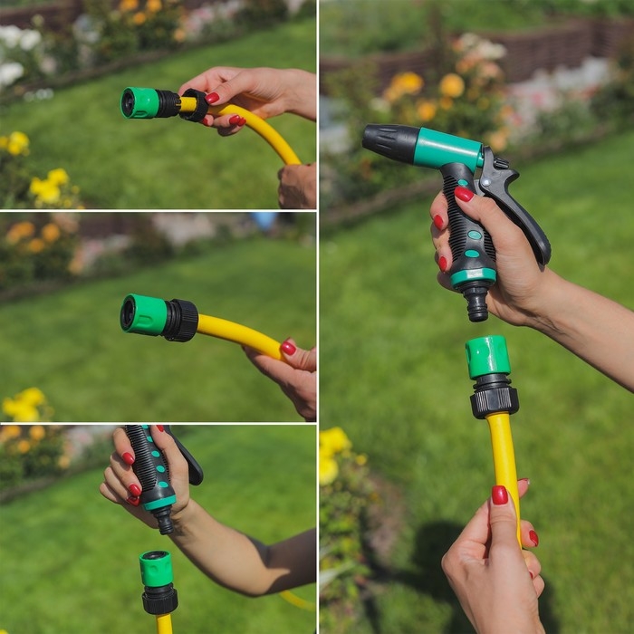 Коннектор предназначен для соединения шланга с пистолетами-разбрызгивателями и распылительными насадками. С ним вы сможете с легкостью менять насадки по необходимости, кроме того он оснащен системой аквастоп. Теперь при отсоединении насадки подача воды сразу же прекратится.