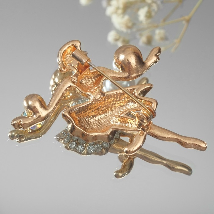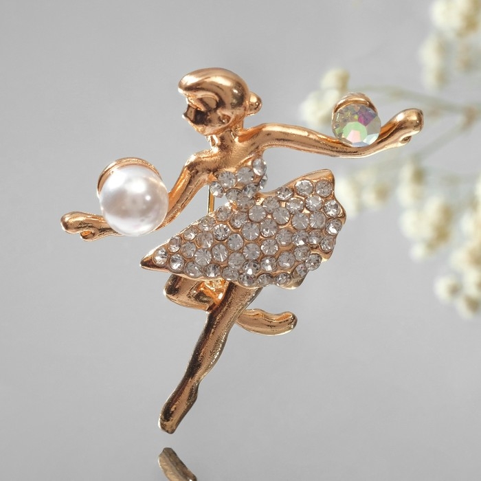 Брошь «Балерина с мячами», цвет белый в золоте