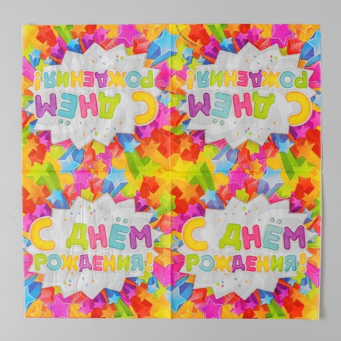 Салфетки бумажные двухслойные «С днём рождения», звёздочки, 33х33, 20 шт.