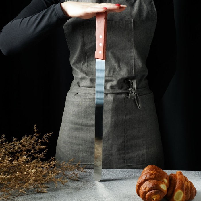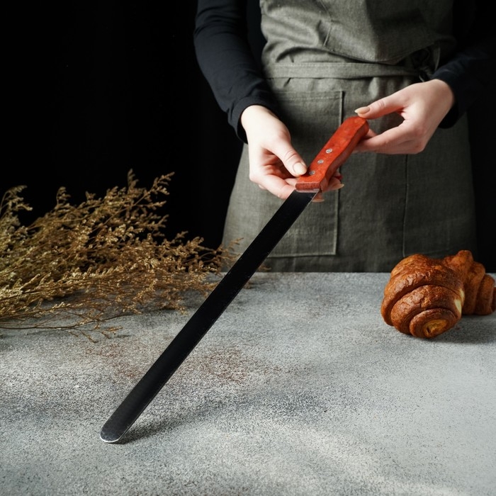 Нож для бисквита ровный край KONFINETTA, длина лезвия 35 см, деревянная ручка