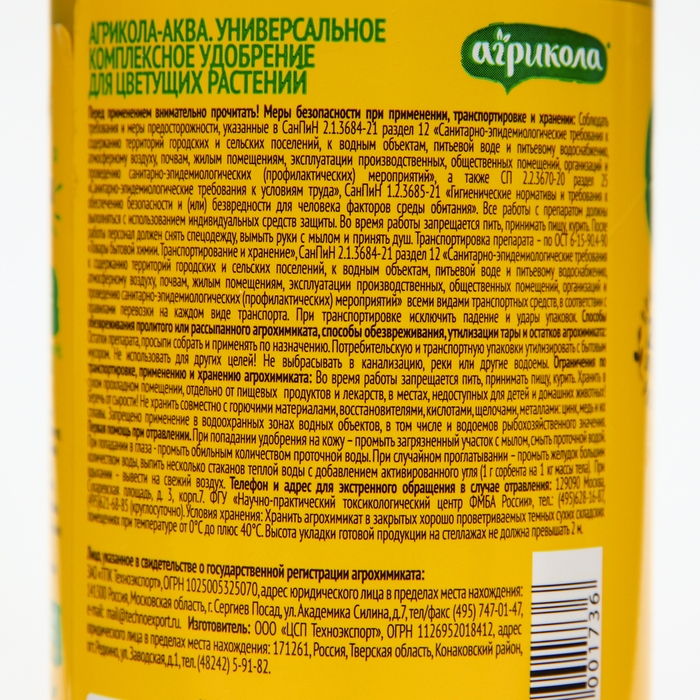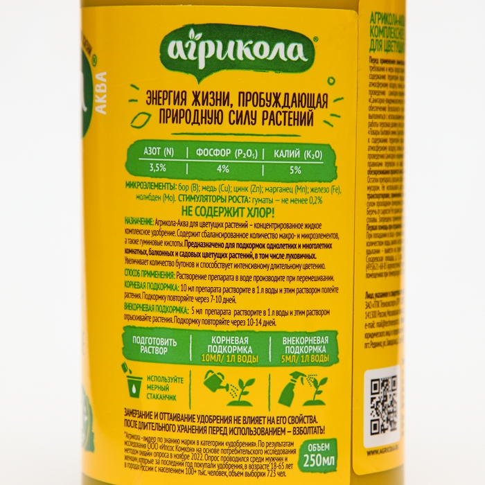 Используется как для корневой, так и для внекорневой подкормки. При норме разведения 5-10 мл удобрения на 1 л воды, флакона объемом 250 мл достаточно для получения 25-50 л подкормочного раствора.