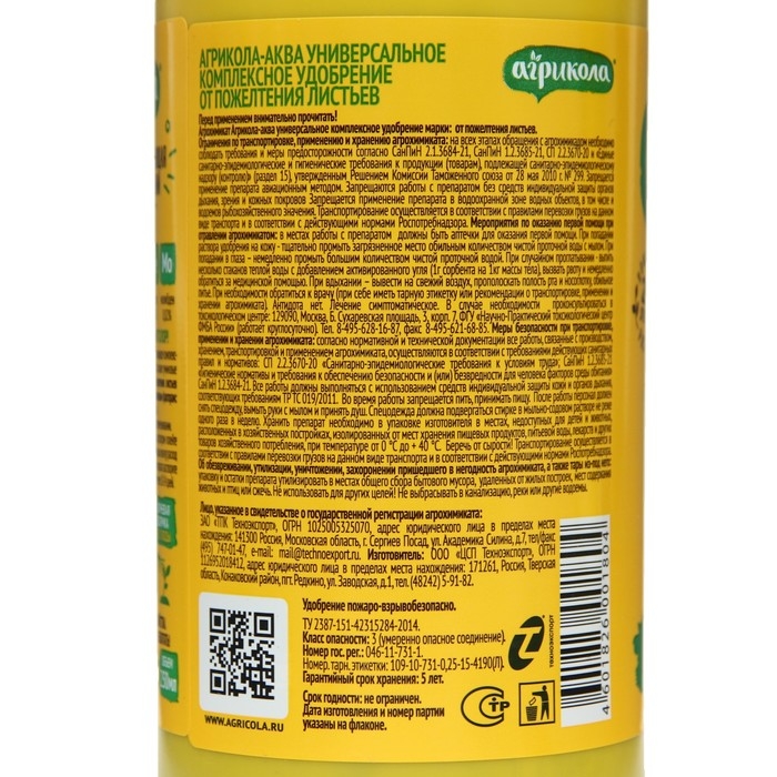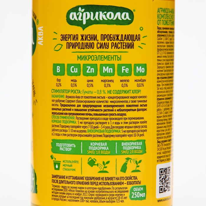 Удобрение Агрикола от пожелтения листьев флакон 250 мл