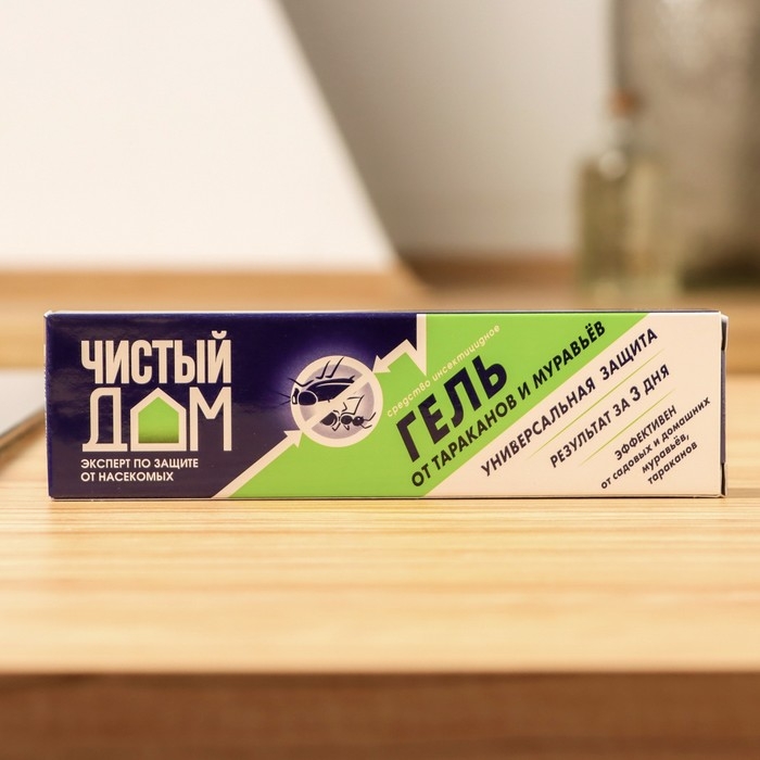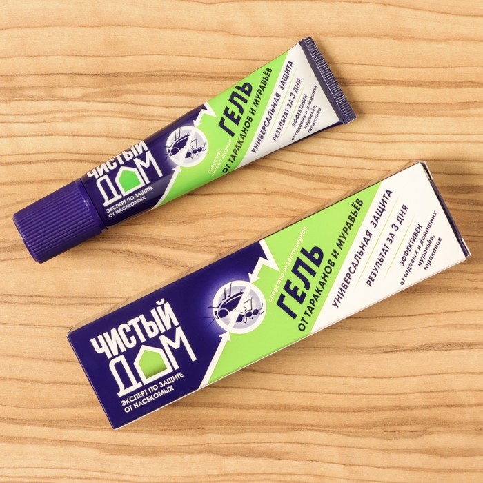 - Высокая эффективность: Гель ""Чистый дом"" был специально разработан для быстрого и надежного уничтожения муравьев и тараканов. Его активное вещество быстро действует на насекомых, обеспечивая быстрый результат.