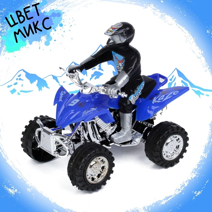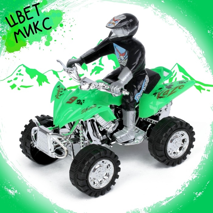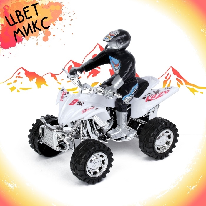 Мотоцикл инерционный «Квадрик», с гонщиком, цвета МИКС — недорогой и приятный презент для любого мальчишки. Он завоюет симпатию малыша и станет верным другом во всех играх.