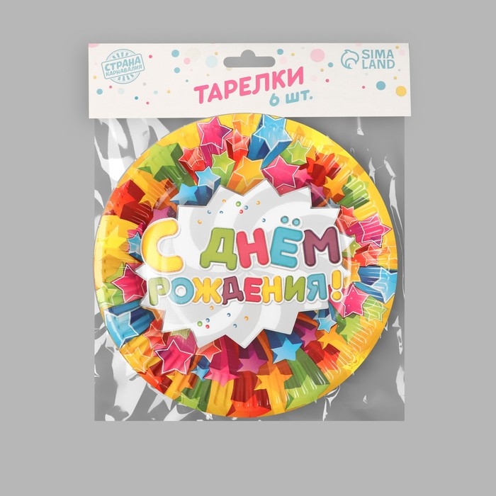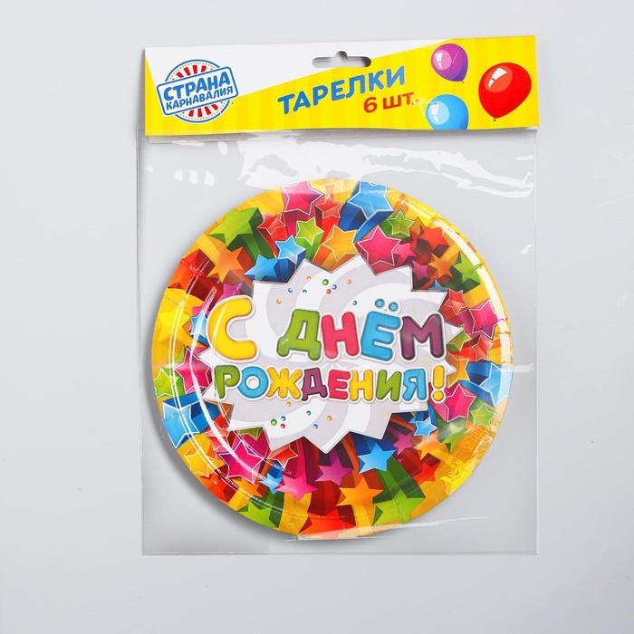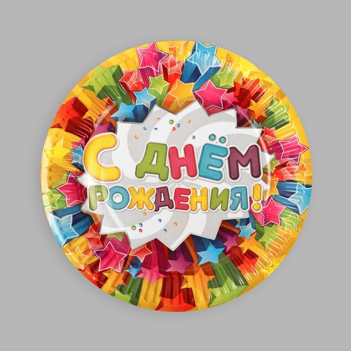 Тарелка одноразовая бумажная "С днем рождения"звезды, (набор 6 шт), d-18см