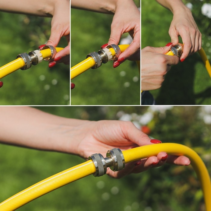 Если поливочный шланг вдруг порвался, потрескался и теперь сочится водой в самых неожиданных местах, не торопитесь покупать новый. Возьмите ремонтную муфту, аккуратно вырежете поврежденный кусок и вставьте два конца шланга в крепления. Теперь можете вновь приступать к поливочным работам.