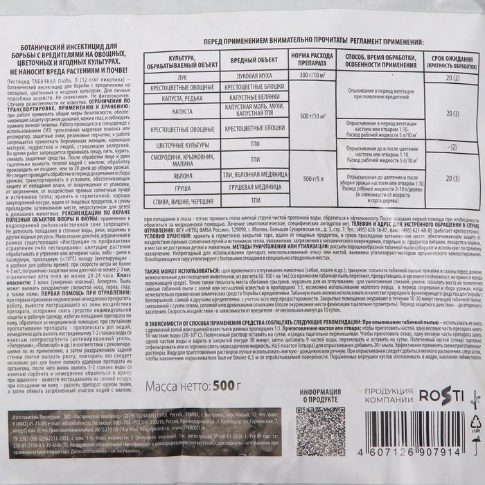 Средство от насекомых вредителей Табачная пыль LETTO 500 г