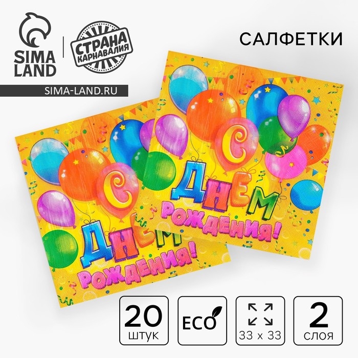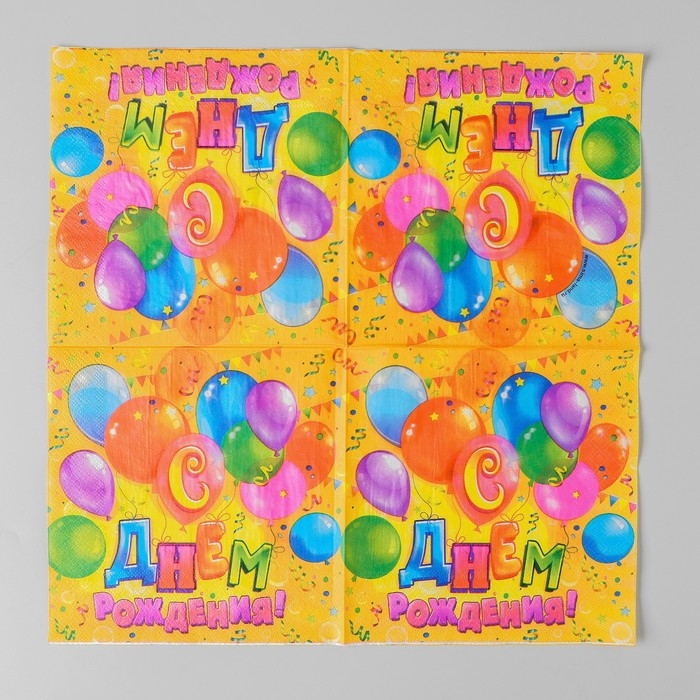 Салфетки бумажные двухслойные «С днём рождения», шарики, конфетти, 33х33, 20 шт.