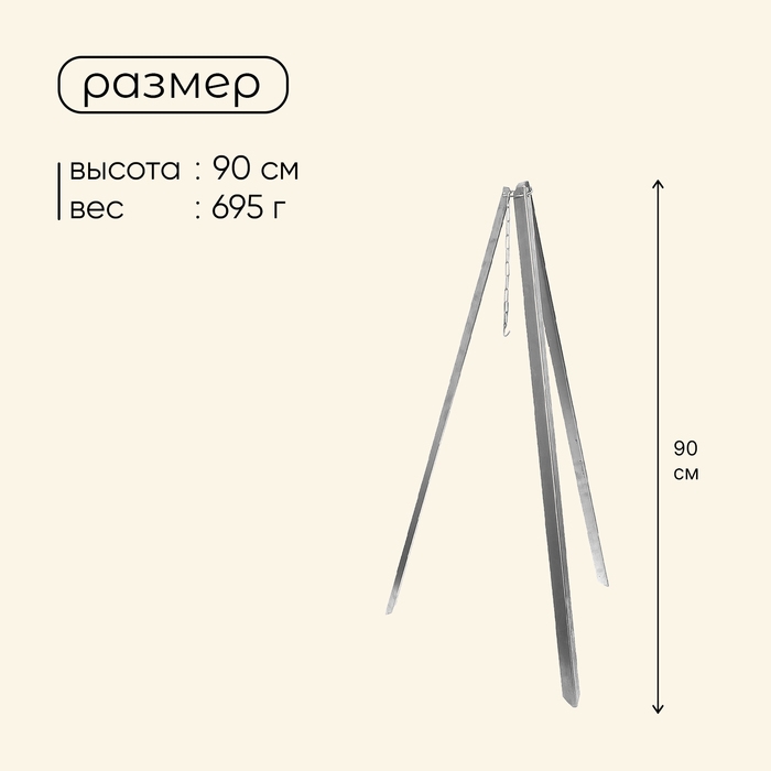 Сварить суп из свежевыловленной рыбки? А может, нагреть воду для посиделок с чаем у костра? С треногой для вас откроется масса возможностей по приготовлению пищи в походных условиях. Установите изделие, повесьте чан на крюк и наслаждайтесь блюдами, приготовленными на свежем воздухе.