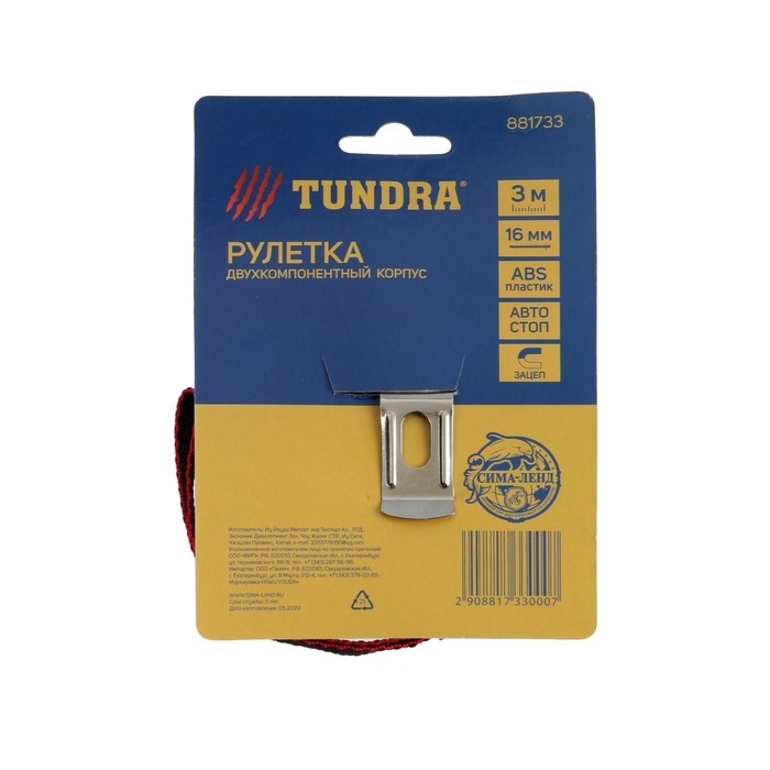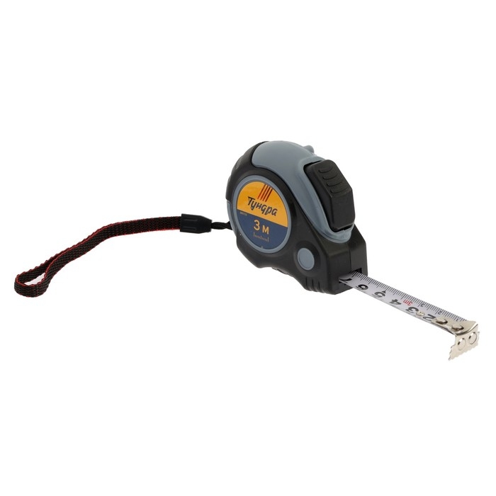 Рулетка ТУНДРА, двухкомпонентный корпус, автостоп, 3 м х 16 мм, магнитный зацеп