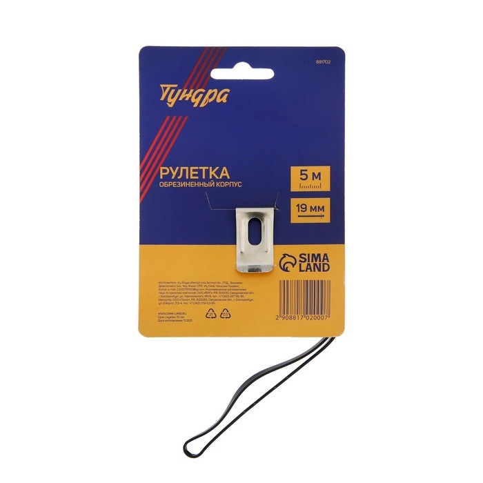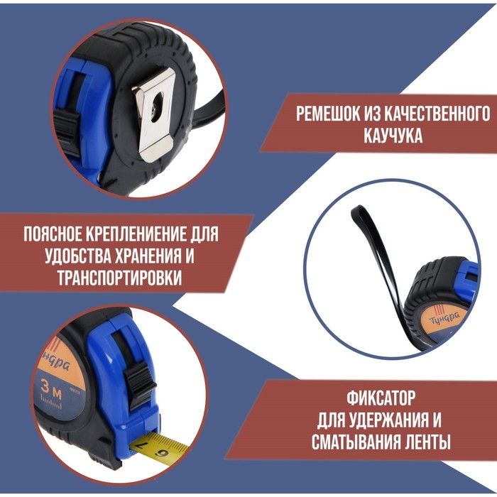 Рулетка ТУНДРА, обрезиненный корпус, 5 м х 19 мм