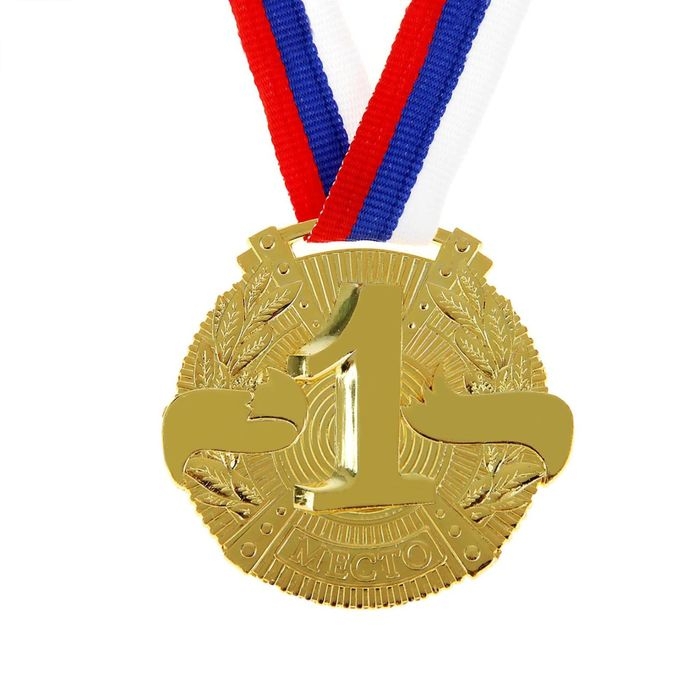 Медаль призовая 071, 1 место. Цвет золото. С лентой. 4,3 х 4,6 см