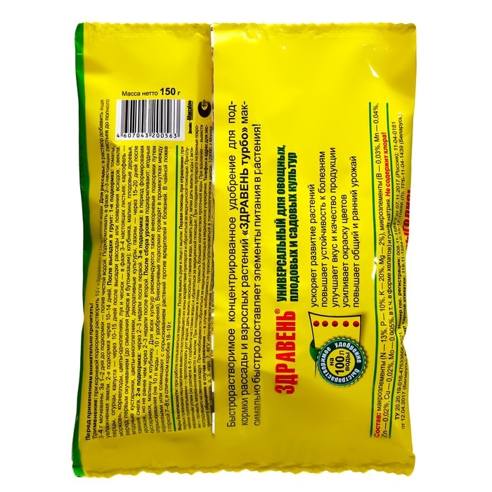 Иногда садоводам и огородникам в условиях дефицита времени необходимо произвести подкормку различных растений, а специализированных видов удобрения «ЗДРАВЕНЬ » под рукой нет. В этом случае Вам на выручку придет «ЗДРАВЕНЬ турбо универсальный», который также содержит все необходимые вещества. Конечно, эффект от такой подкормки будет несколько меньше, но все же он будет весьма высоким. Ведь известно, что хорошее решение в нужное время всегда лучше, чем прекрасные решения не вовремя.