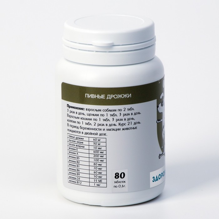 Пивные дрожжи очищенные для кошек и собак, 80 таб