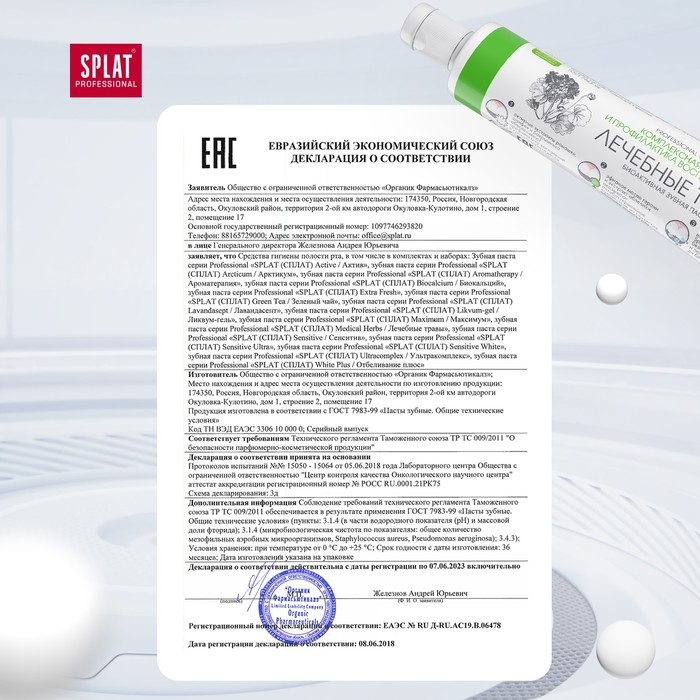 Гелевая зубная паста изумрудного цвета содержит экстракты шалфея, ромашки и боярышника для эффективного ухода за зубами и деснами, обладает противовоспалительным и кровоостанавливающим действием.Кальцис, полученный из яичной скорлупы, укрепляет эмаль и защищает от кариеса.Экстракт облепихи способствует заживлению мягких тканей полости рта. Эфирное масло герани – прекрасный антисептик, обладает противовирусным и обезболивающим свойствами, оказывая мягкое воздействие на эмоциональное состояние, придает силы и создает светлое настроение. Фторид-ионы ускоряют процессы восстановления эмали, оказывают бактерицидное действие.Содержит фтор (1000 ppm).