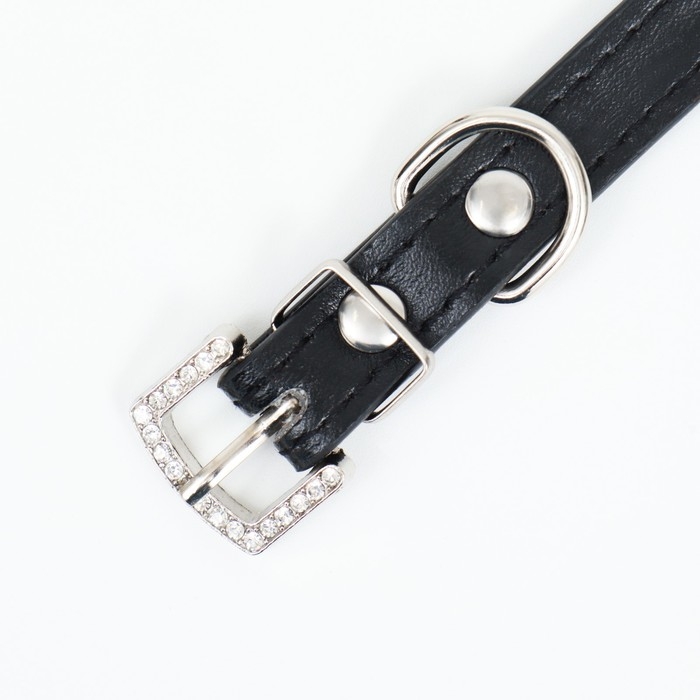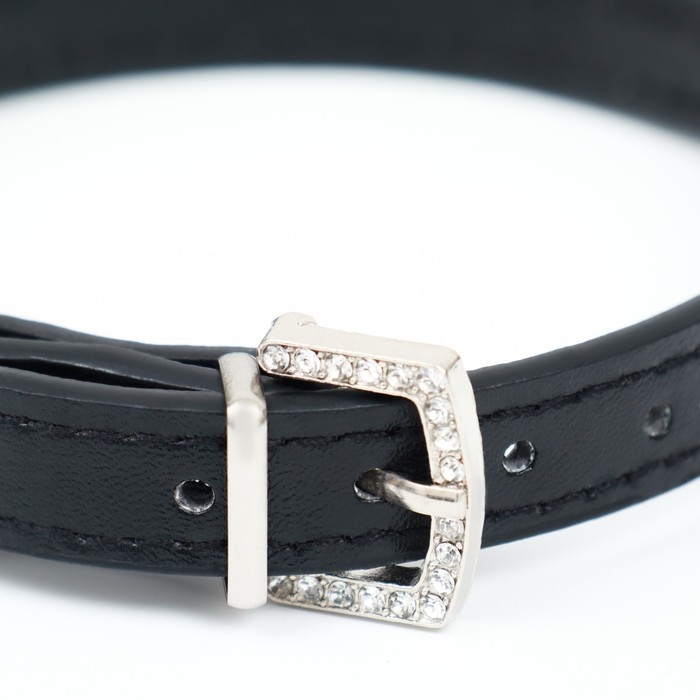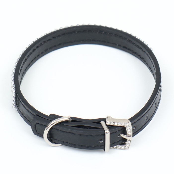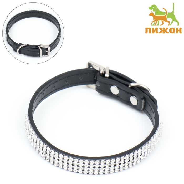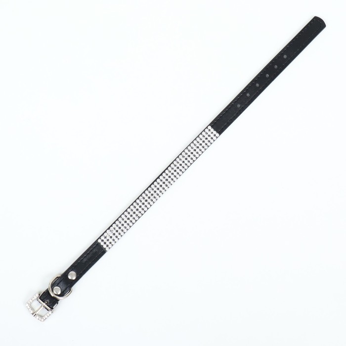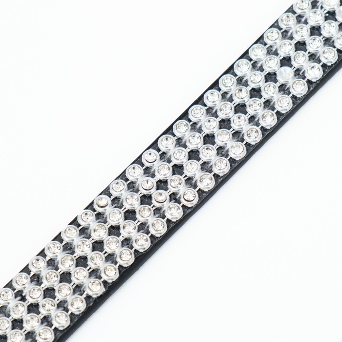 Ошейник со стразами в 4 ряда и стразы на пряжке, 38 х 1,5 см, ОШ 26-33, чёрный