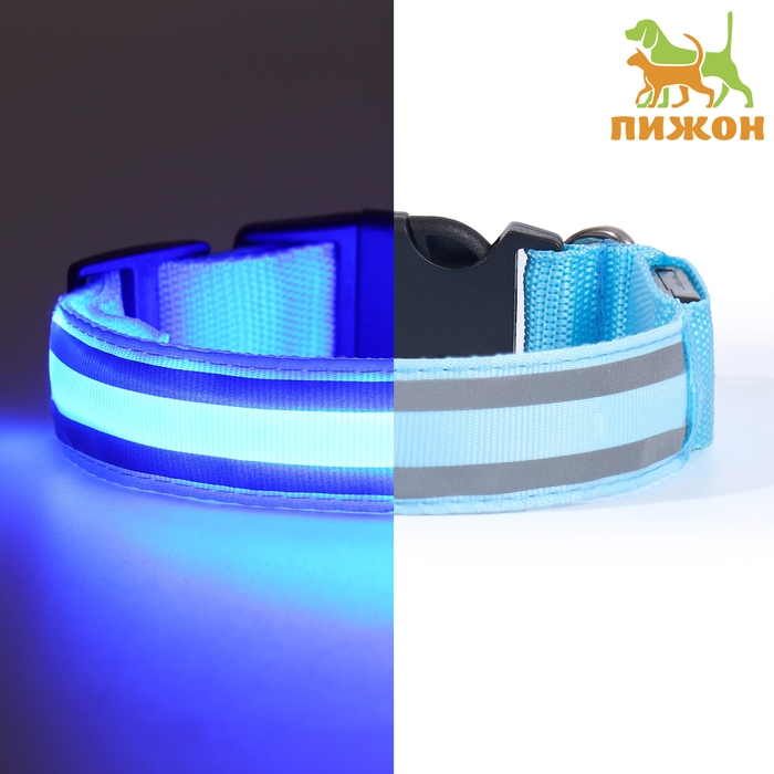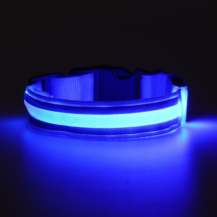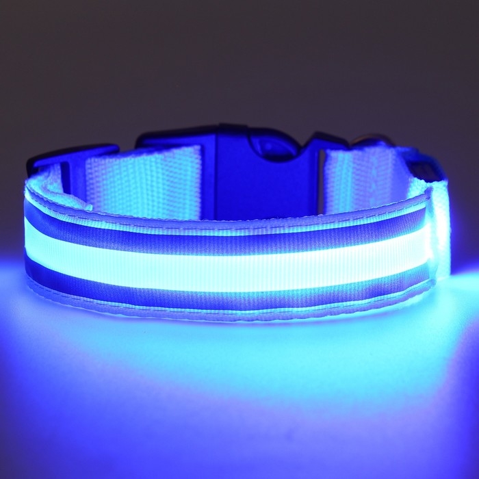 Ошейник с подсветкой "Двойная полоса", 3 режима свечения, голубой