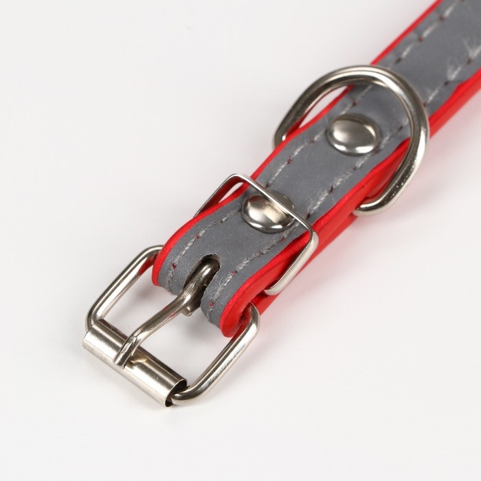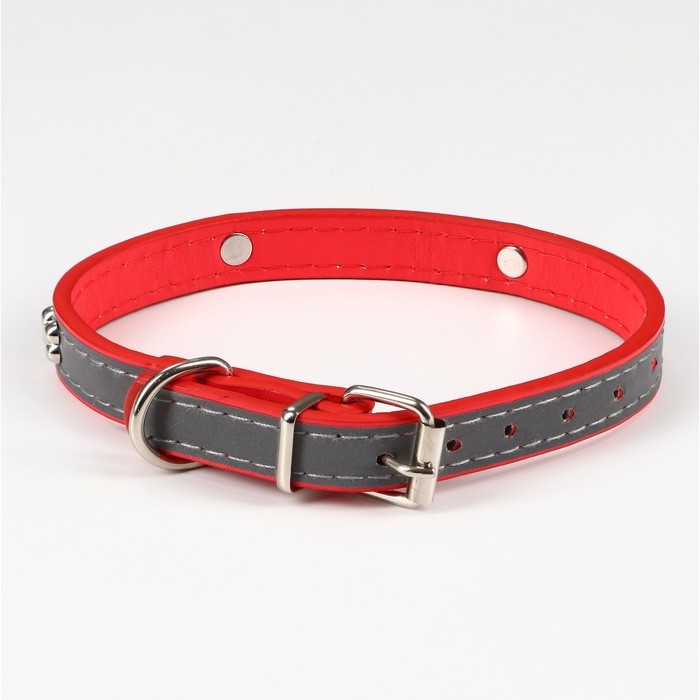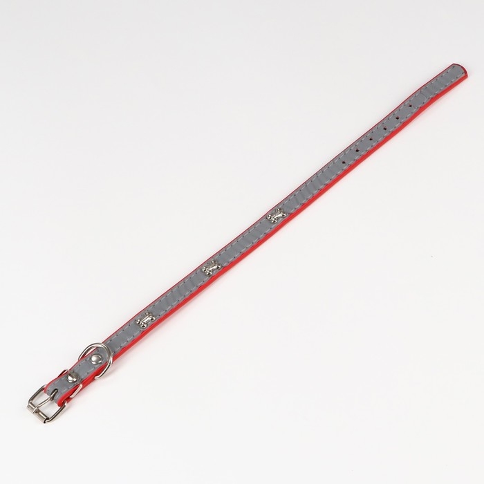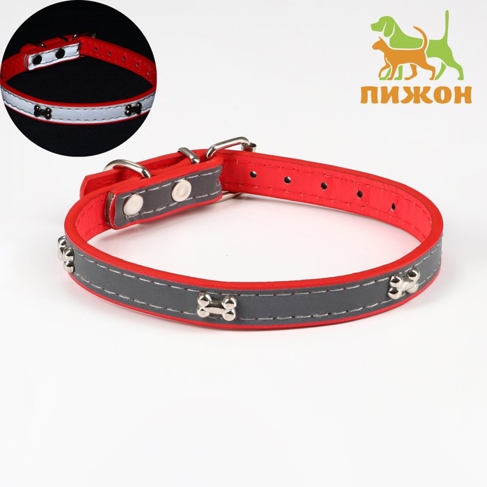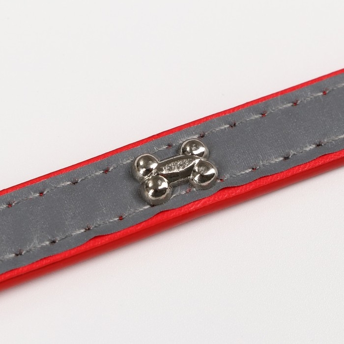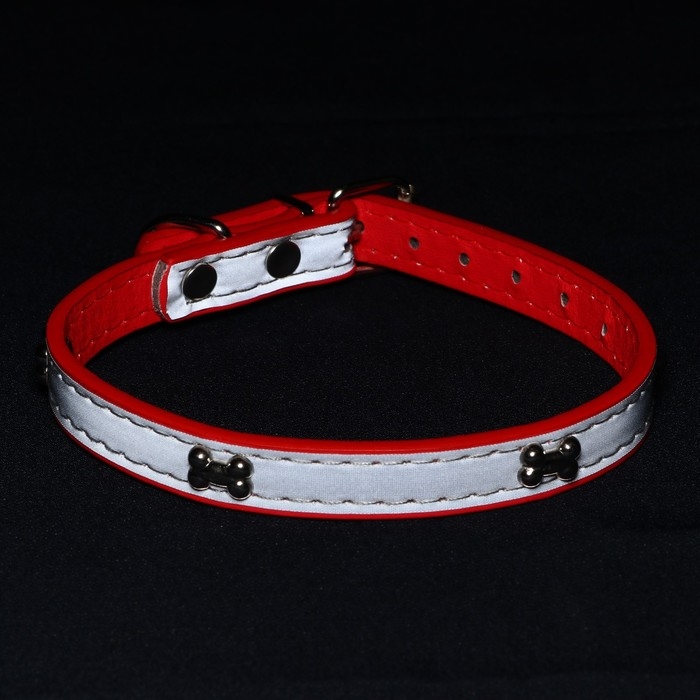 Ошейник с косточками светоотражающий, 37 х 1,3 см, ОШ 26-33, красный