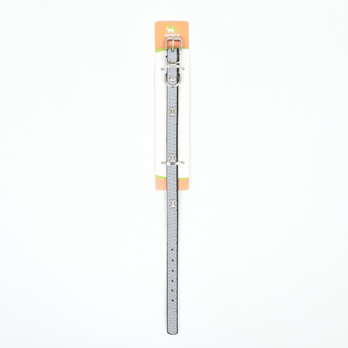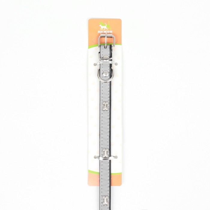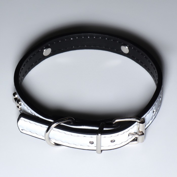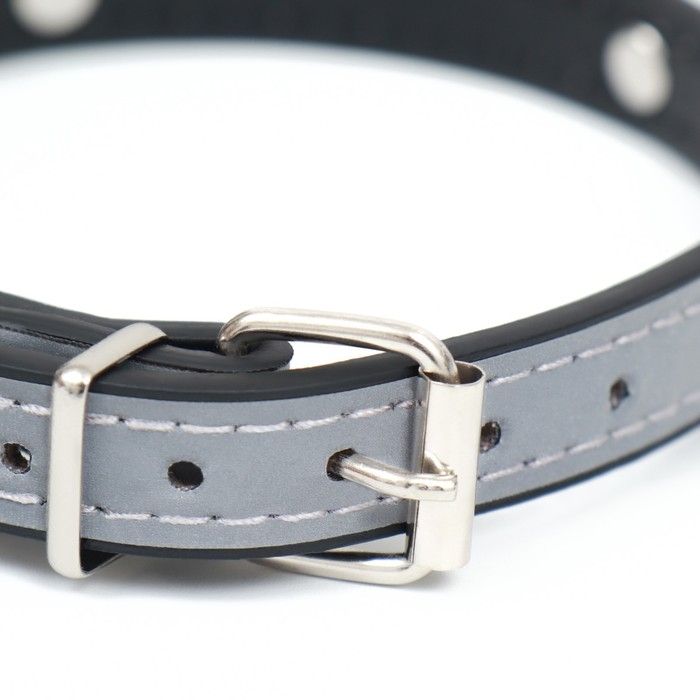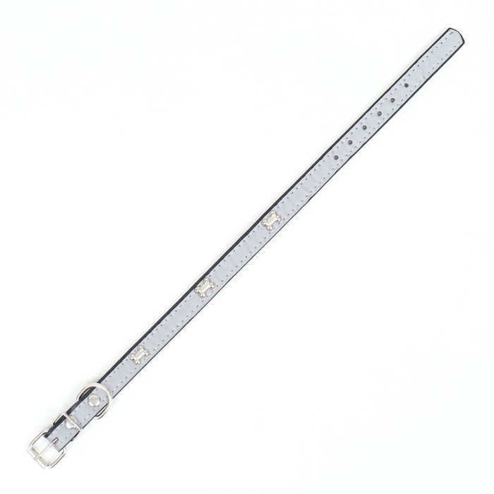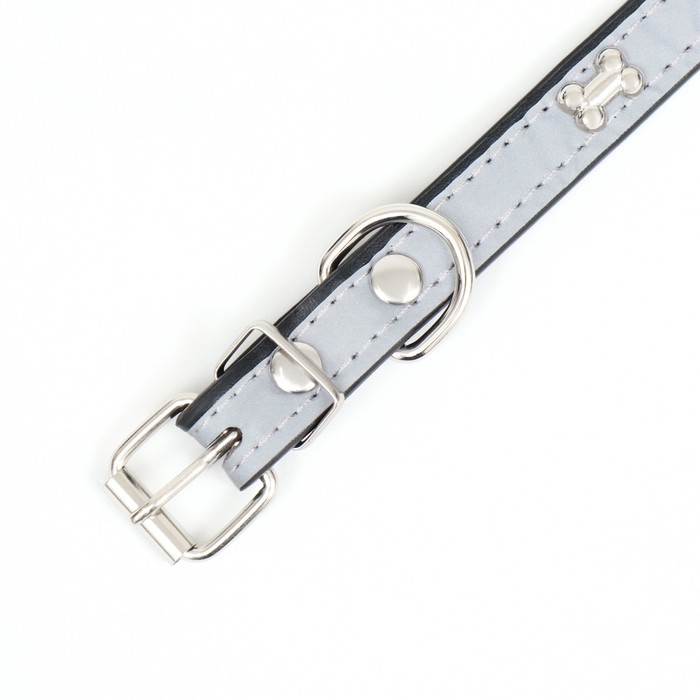 Ошейник с косточками светоотражающий, 37 х 1,3 см, ОШ 26-33, чёрный