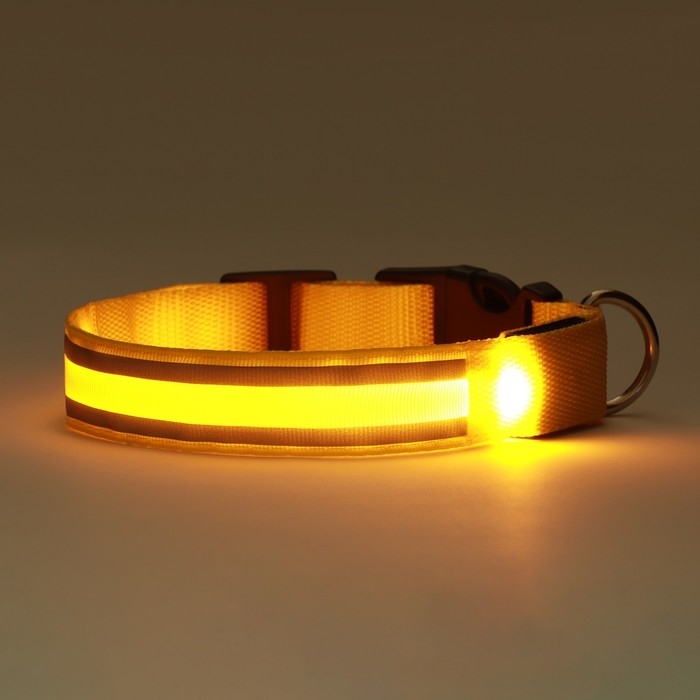 Ошейник с подсветкой "Двойная полоса", 3 режима свечения, жёлтый