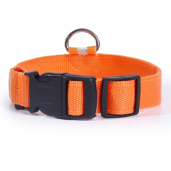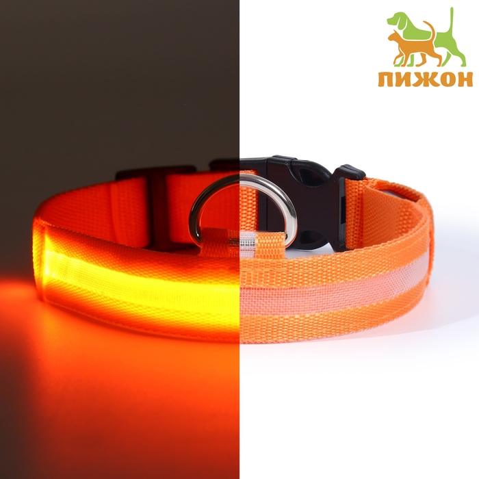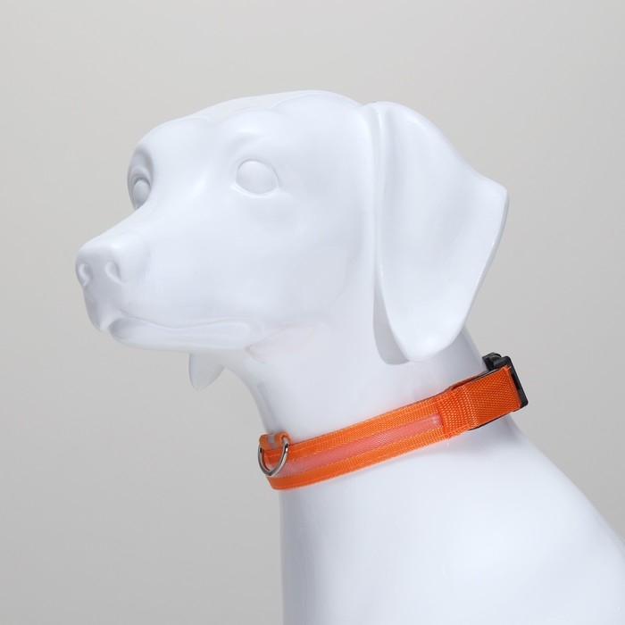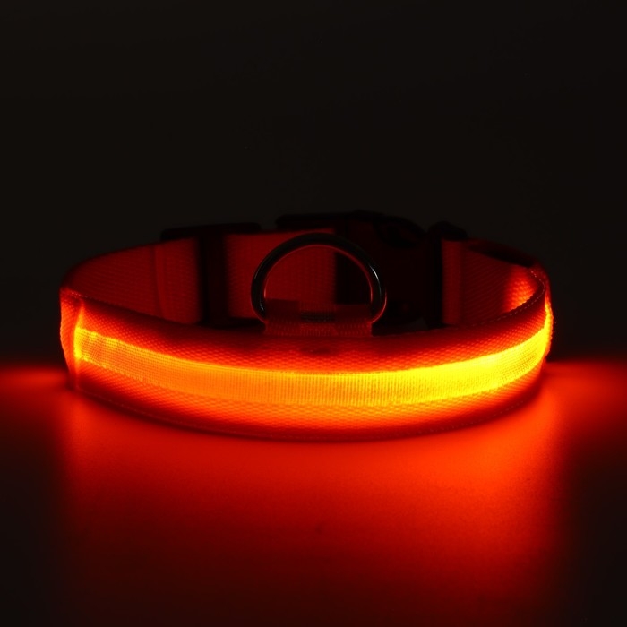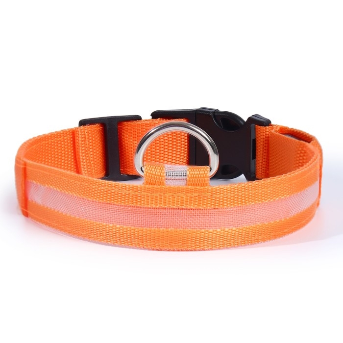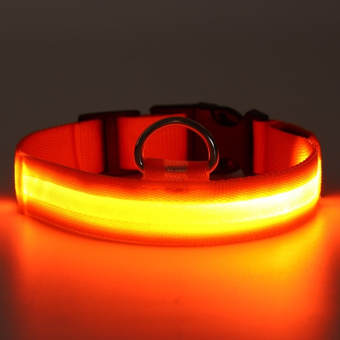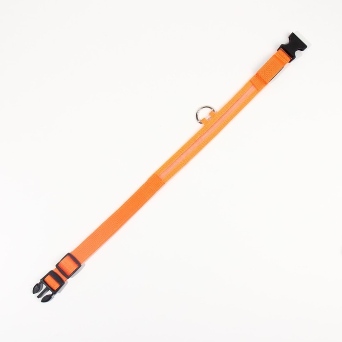 Ошейник с подсветкой размер L, ОШ 45-52 х 2,5 см, 3 режима свечения оранжевый