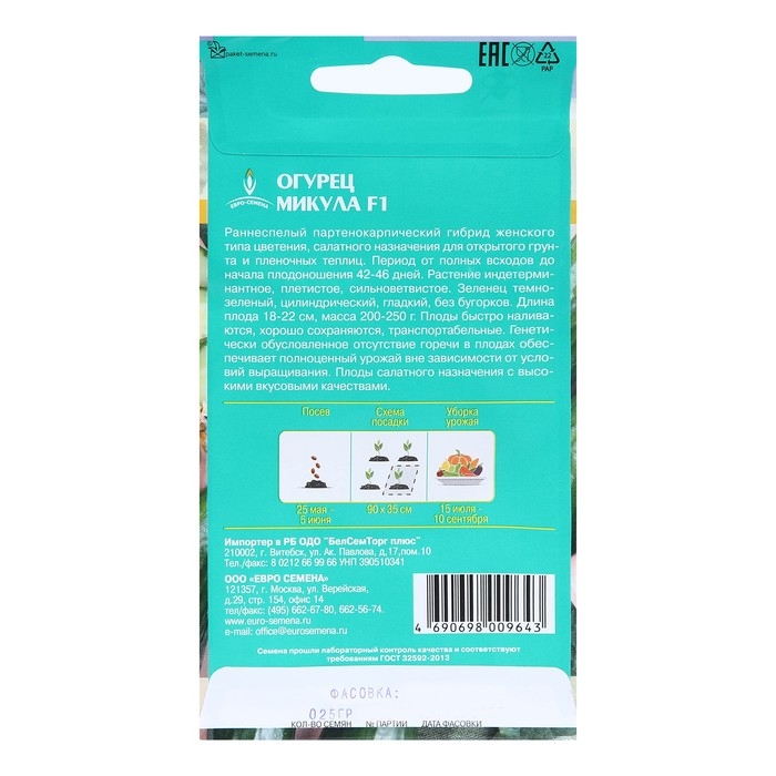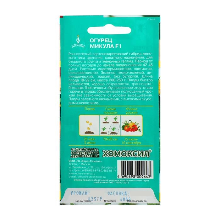 Семена Огурец Микула F1 раннеспелый, партенокарпический, гладкий, салатный 0,25 г.