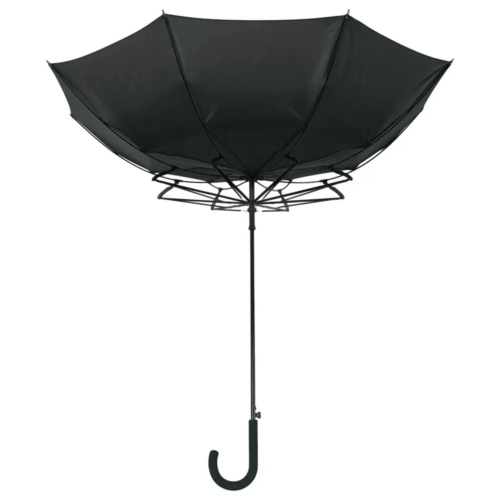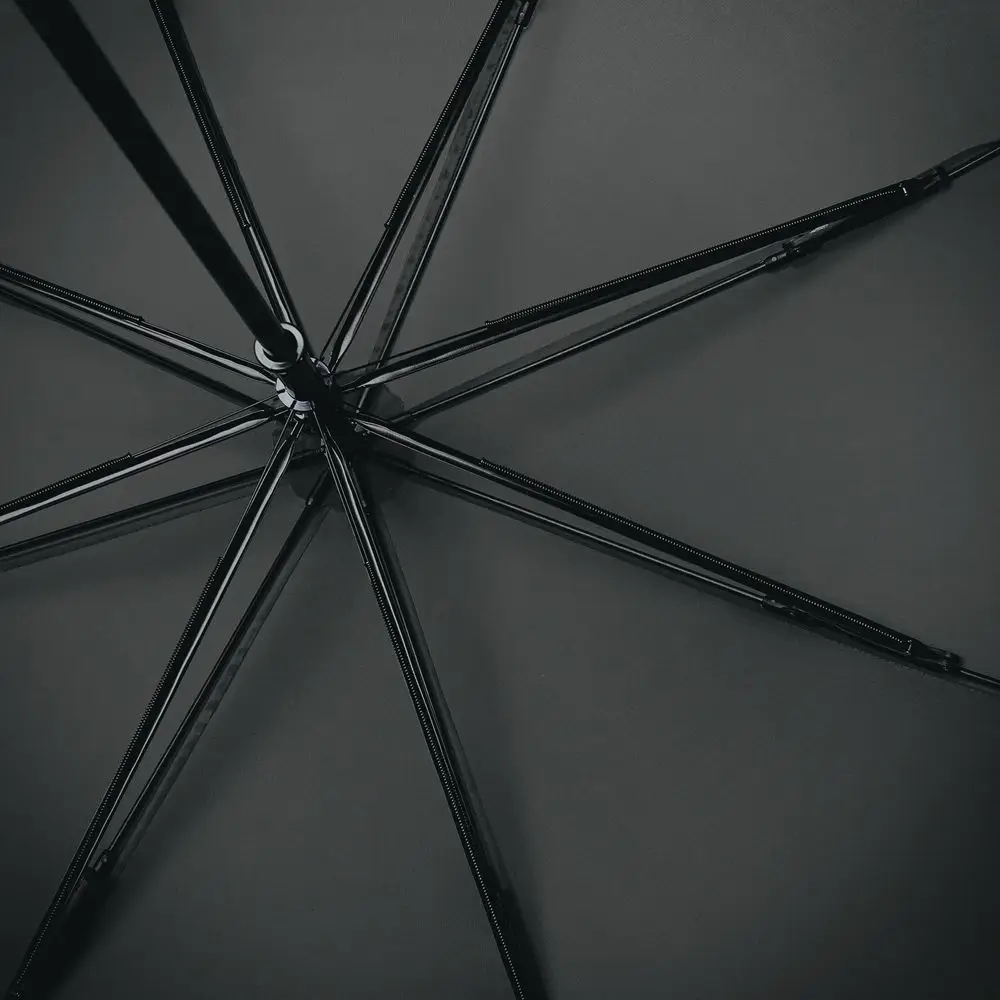 Зонт снабжен системой защиты от ветра. Если при экстремальных порывах ветра купол выгибается, то механизм пружинит, не давая спицам погнуться или сломаться.