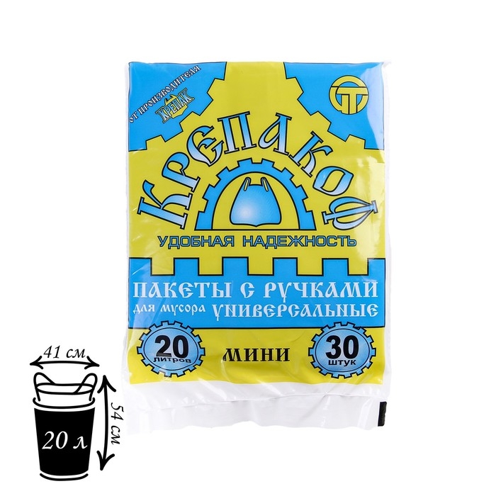 Мешки для мусора «Крепакоф», 20 л, с ручками, ПНД, 9 мкм, 41×54 см, 30 шт, цвет чёрный