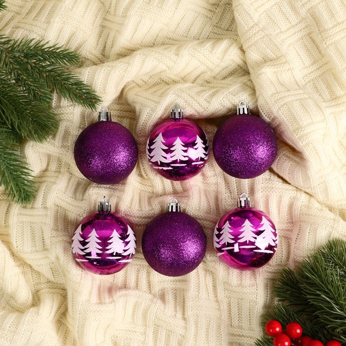 Набор шаров пластик d-6 см, 6 шт "Новогодняя ёлка " фиолетовый