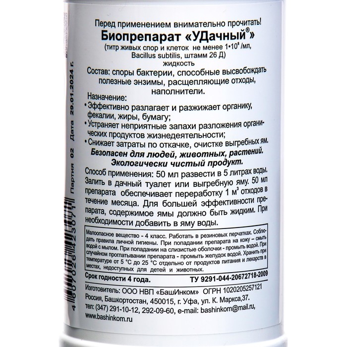 Биопрепарат для туалетов и выгребных ям Удачный 0,5 л