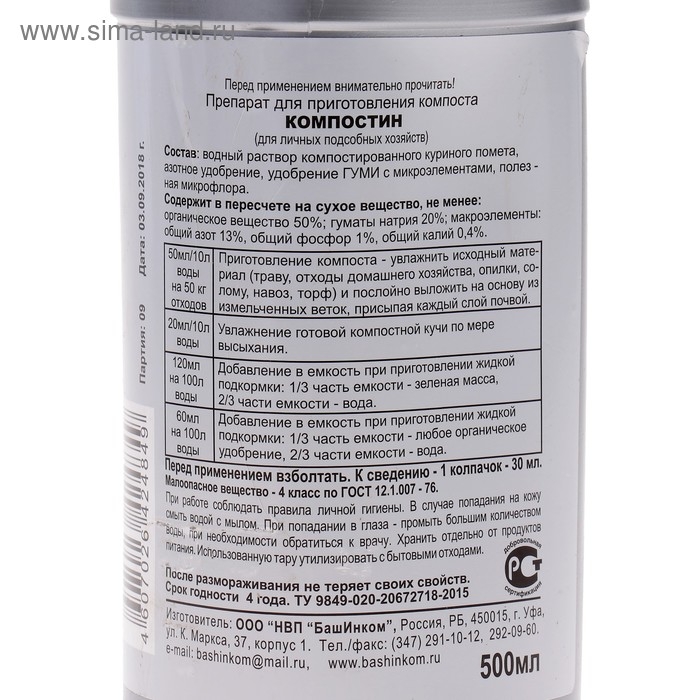Средство для ускорения созревания компоста Гуми-Оми Компостин, 0,5 л