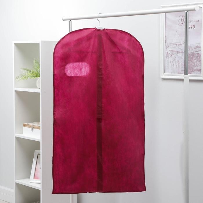 Чехол для одежды с окном, 60×100 см, спанбонд, цвет бордо