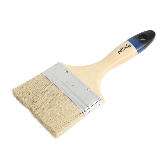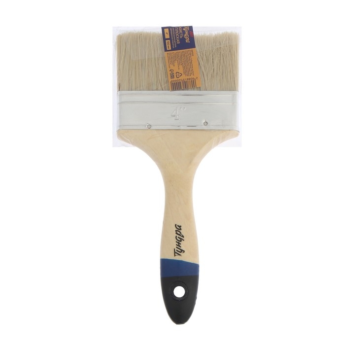 Кисть плоская ТУНДРА, натуральная щетина, деревянная рукоятка, 4", 100 мм