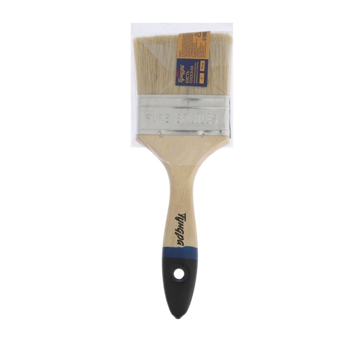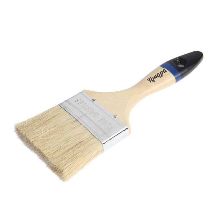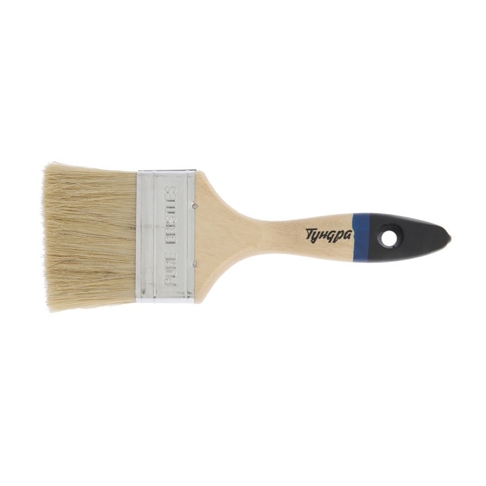 Кисть плоская ТУНДРА, натуральная щетина, деревянная рукоятка, 3", 75 мм