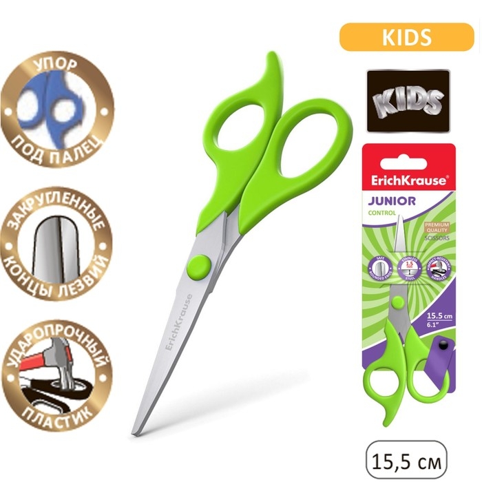 Ножницы детские ErichKrause Control Junior, 15.5 см, с закруглёнными концами лезвий, ударопрочный пластик, МИКС