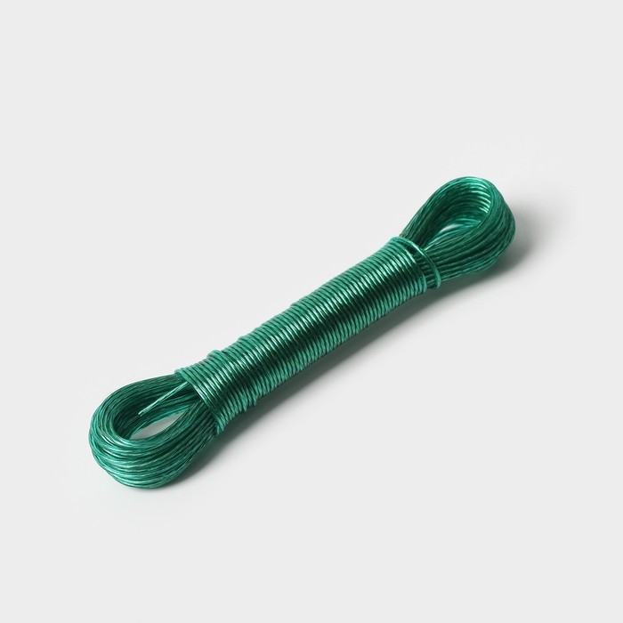 Верёвка бельевая Доляна, металлическая нить, d=2 мм, длина 20 м, цвет МИКС