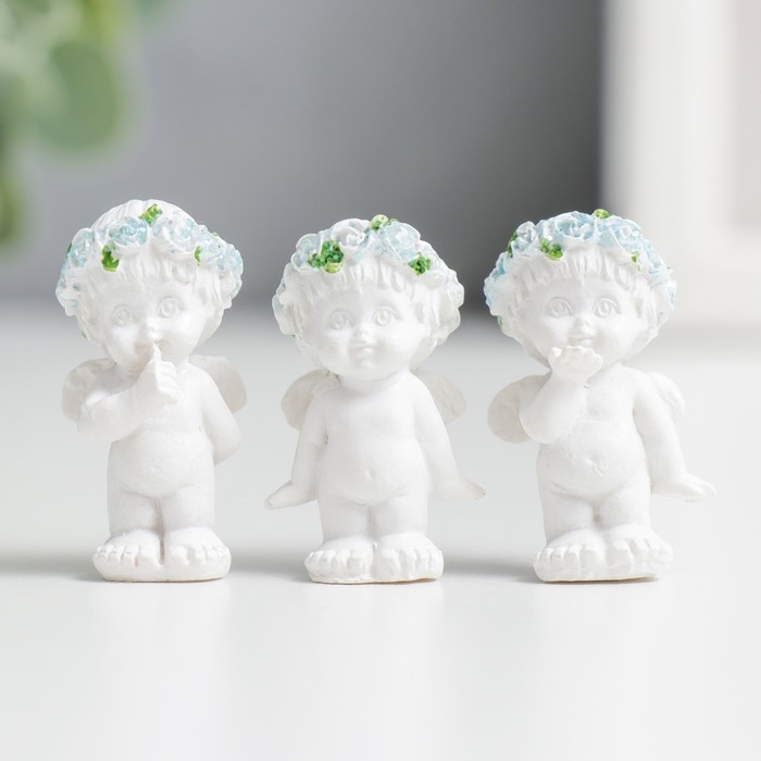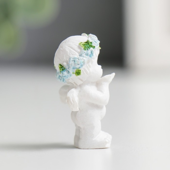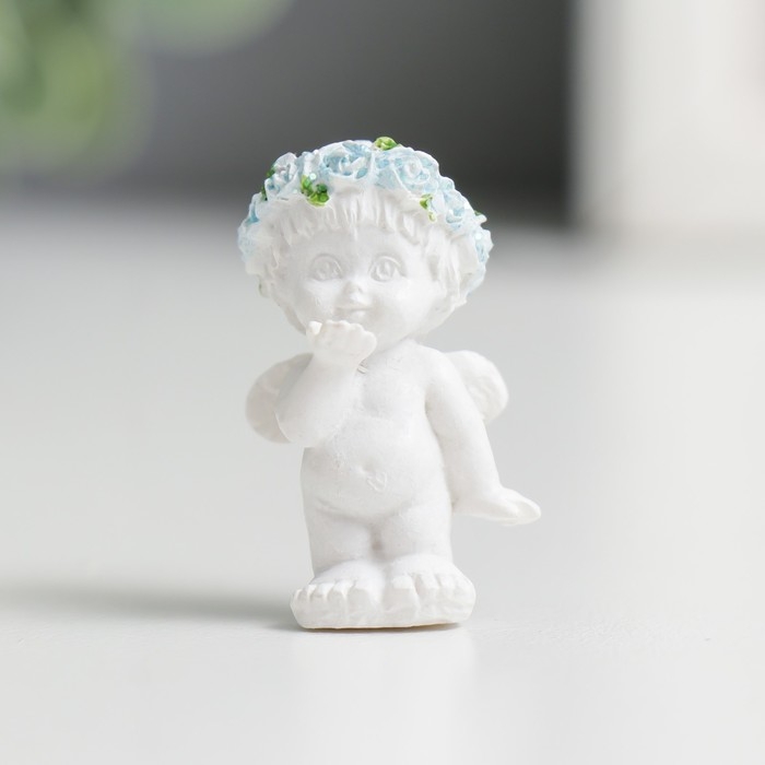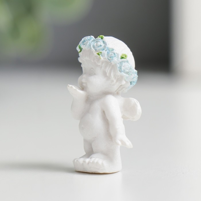 Сувенир полистоун "Ангелочек малышок" голубой веночек, МИКС, 3х1,5х2 см