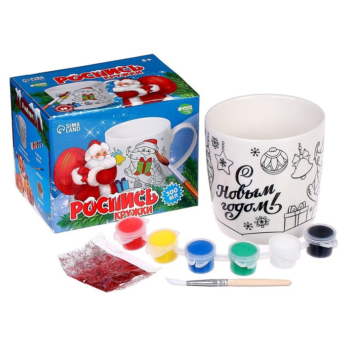 Кружка под раскраску на новый год «Новый год!», 300 мл, новогодний набор для творчества