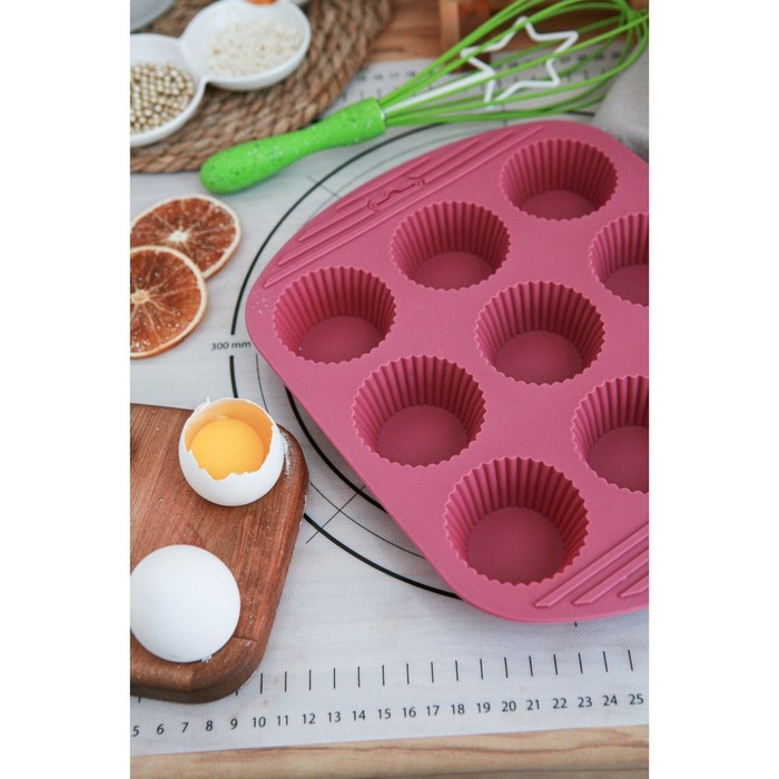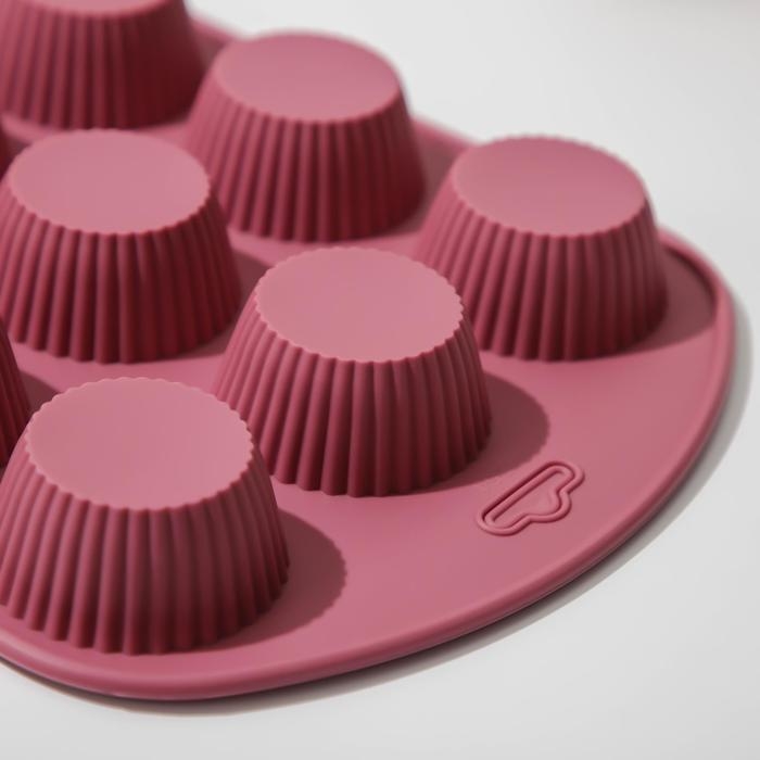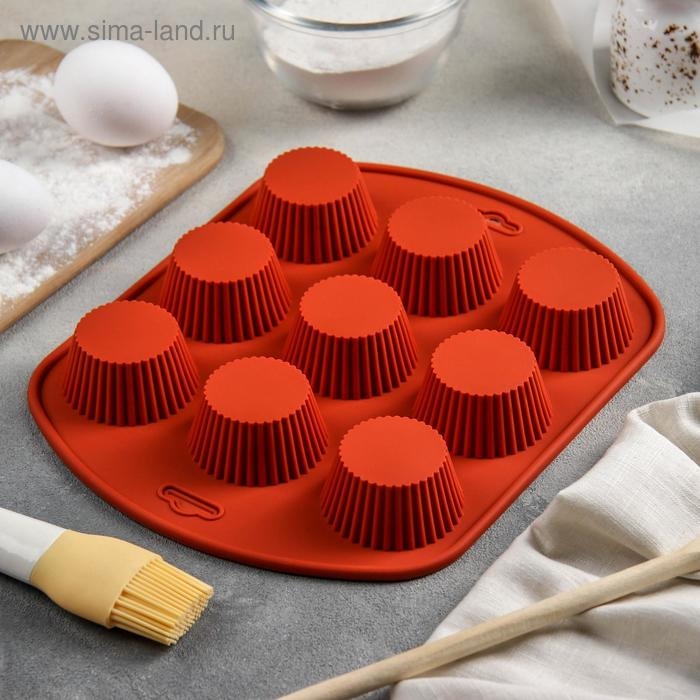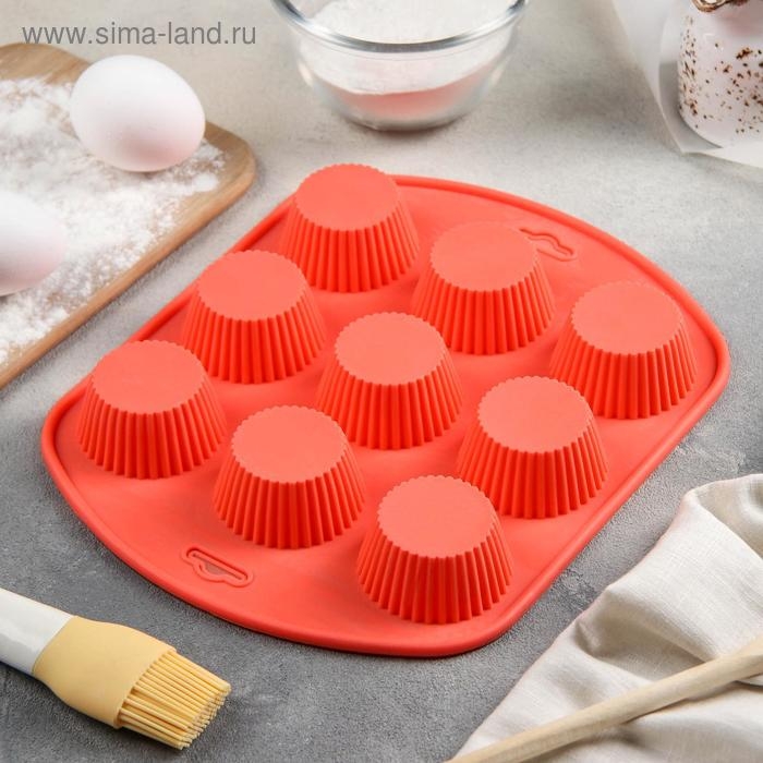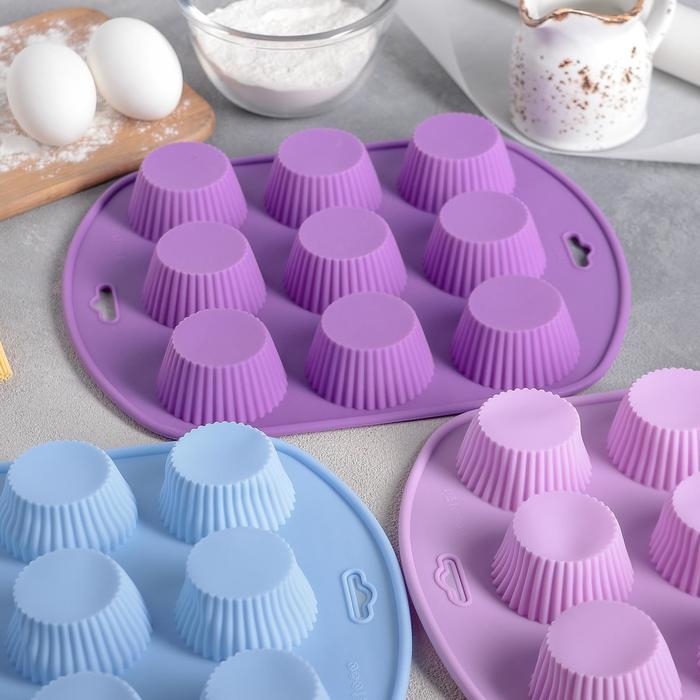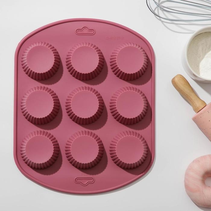 Форма для выпечки Доляна «Сладости. Круг реб», силикон, 27×22×3 см, 9 ячеек (6×6×3 см), цвет МИКС
